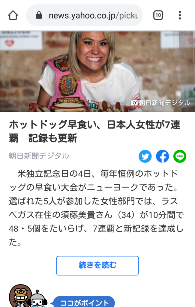 日本人女性、ホットドッグ早食い大会で7連覇してしまうww