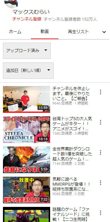 152万人もいるならそこら辺の人気ゲームやっときゃ再生数かせげるやろ