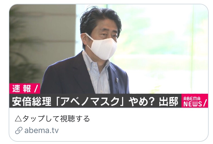 安倍総理大臣がガーゼのマスク、いわゆる「アベノマスク」をやめて、一般的なマスクとつけはじめた。